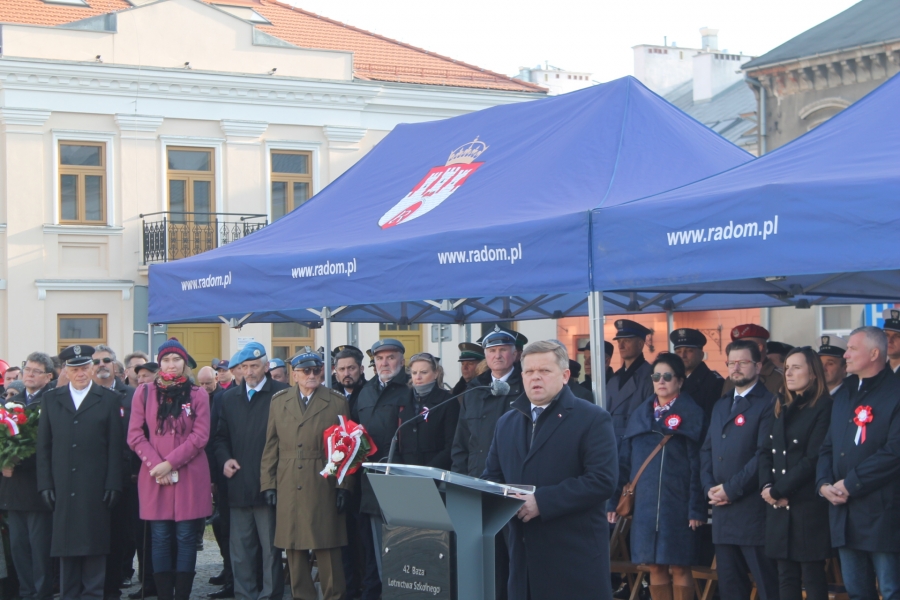Wiceprezydent Radomia Jerzy Zawodnik nawiązał  do zwycięskiego finału walki  o niepodległość. Przypomniał, że  Radom i radomianie odegrali w wydarzeniach sprzed 103 lat szczególną rolę. - Zanim 11 listopada Józef Piłsudski, odebrał z rąk Rady Regencyjnej władzę nad wojskiem, co czcimy dziś jako początek wolności i niepodległości, Radom był już niepodległy od 10 dni. Stało się tak za sprawą obywateli miasta, którzy 2 listopada 1918 roku wzięli swój los we własne ręce, rozbrajając austriacki garnizon, przejmując władzę i powołując tzw. Republikę Radomską. Tym samym nasze miasto stało się jednym z pierwszych wolnych od zaborcy miast w Królestwie Polskim. Radom 1918 roku był i jest przykładem, jak w poszanowaniu demokratycznych praw wszystkich stanów i grup społecznych, można budować wspólnotę - mówił wiceprezydent.